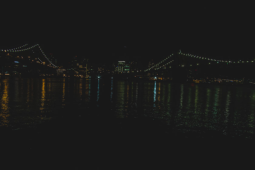 This the the Manhattan and Brooklyn Bridges. A view from Downtown Manhattan into Brooklyn