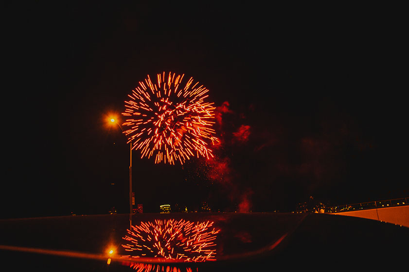 Firework in Manhattan on the East River that turns into Harlem River further north up the FDR Dr.