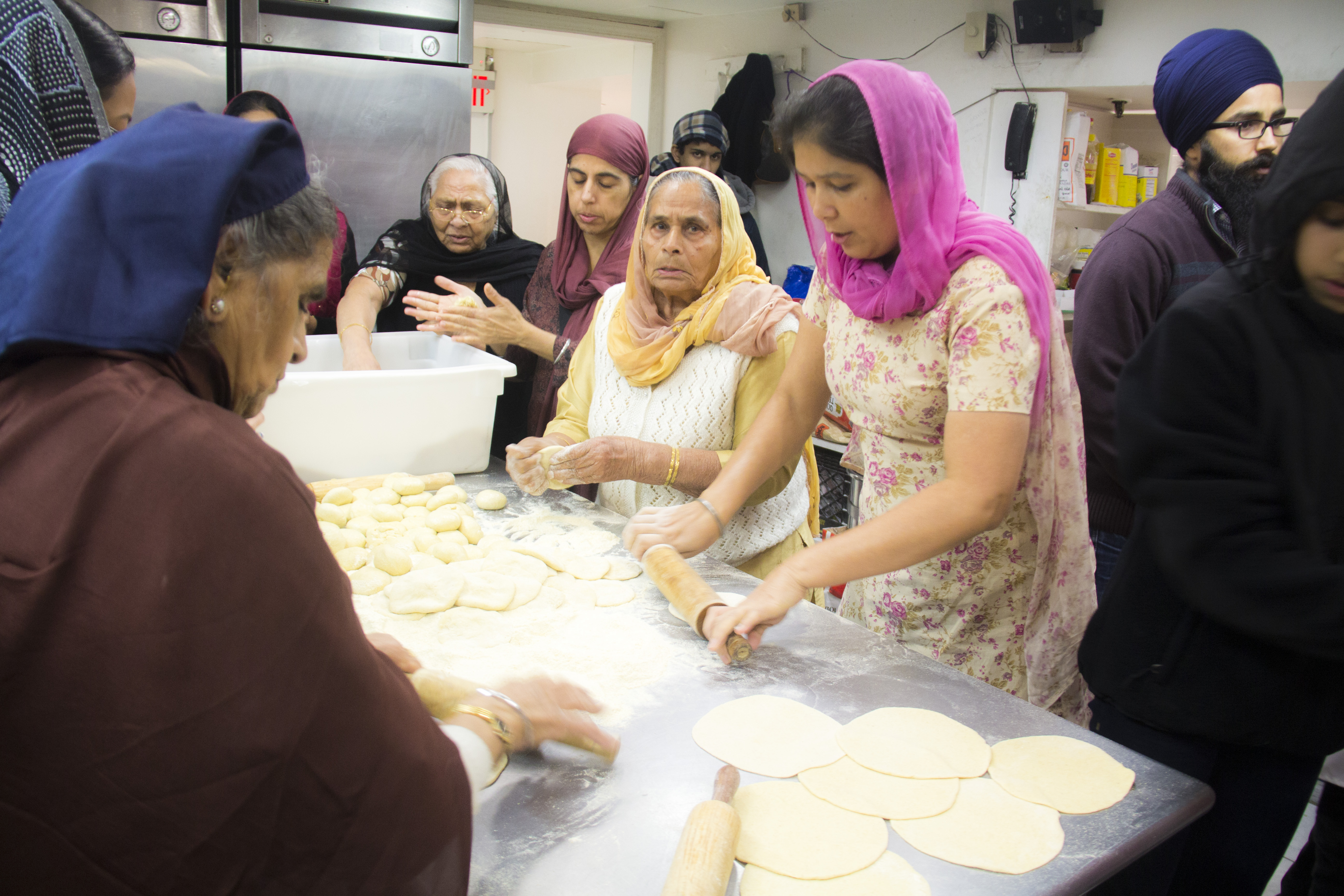 Woman rolling and kneading roti- Indian bread