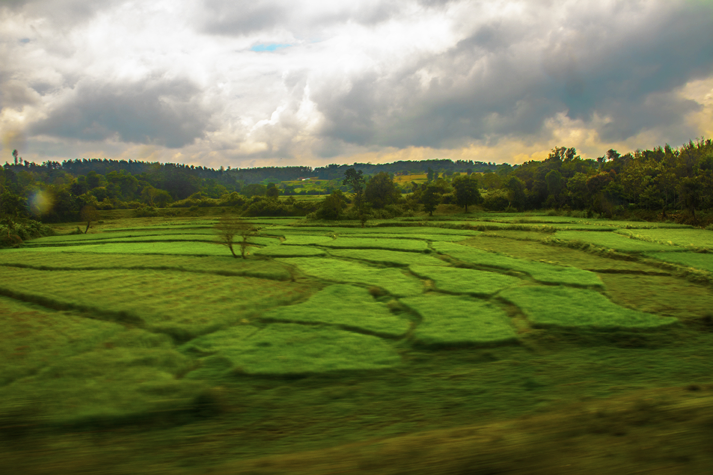 A view for the train the paddy fields of South India